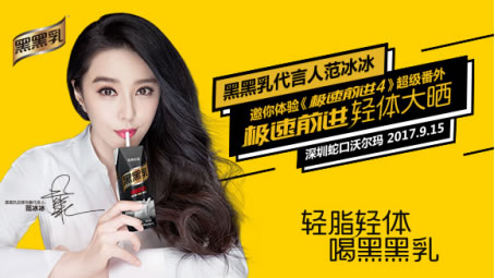 轻脂饮品黑黑乳强势整合范冰冰&极速前进两大IP,继冠名《极速前进》后,正式签约节目嘉宾及话题女王范冰冰作为品牌形象代言人,范爷成为新一代轻脂女神。自从签约成为黑黑乳代言人,范爷“轻脂女神”的名号深入人心,轻脂饮品黑黑乳帮助范爷随时随地轻脂轻体,保持轻盈好体态。而在范冰冰开挂般的极速前进旅程中,身边总是少不了轻脂饮品黑黑乳的身影。